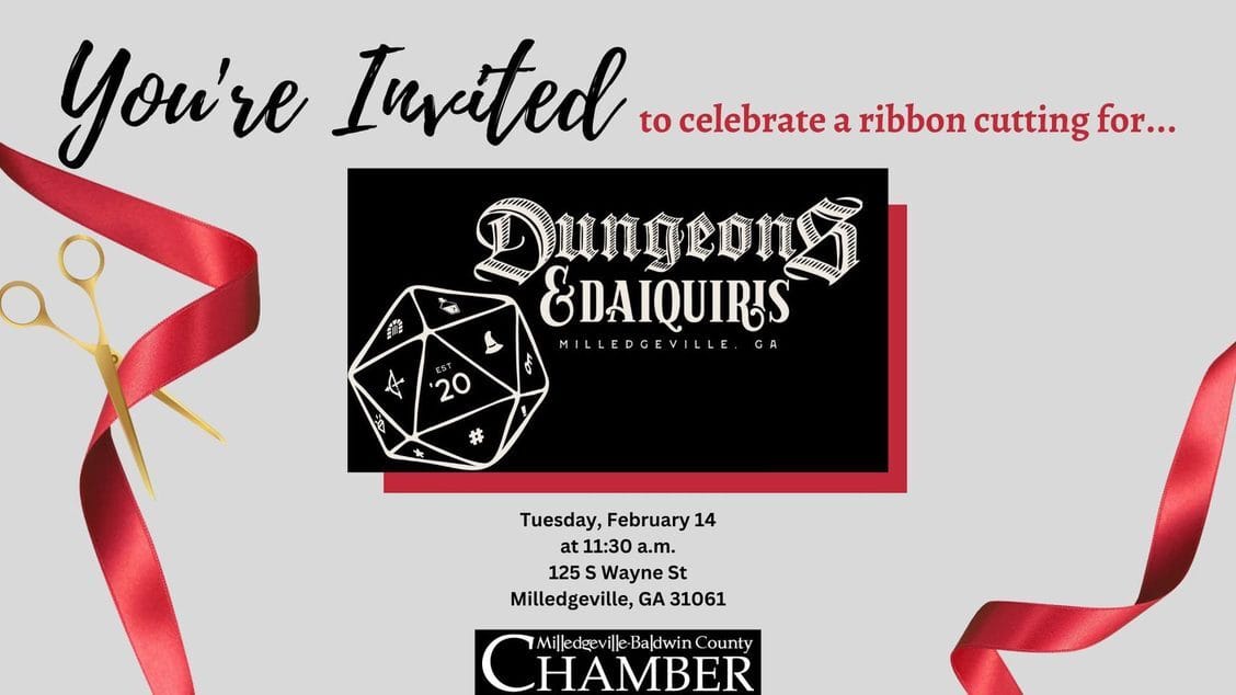 Join the Milledgeville-Baldwin Chamber in welcoming Dungeons & Daiquiris with a ribbon cutting on February 14th!