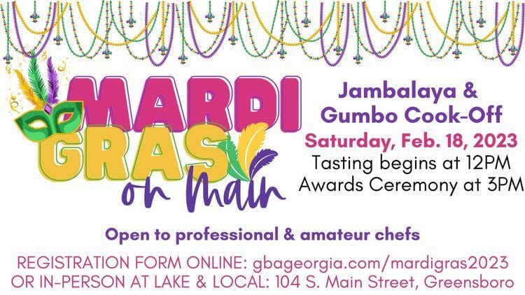 The Greensboro Business Association is proud to sponsor the inaugural Mardi Gras on Main event on Saturday, Feb. 18th, with a Jambalaya & Gumbo Cook-Off from 12PM-3PM.
