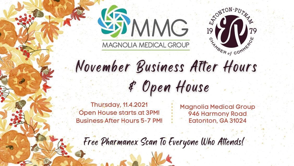 Please join the Eatonton-Putnam Chamber of Commerce and their host, Magnolia Medical Group for November Business After Hours & Open House, Thursday, November 4, 2021!