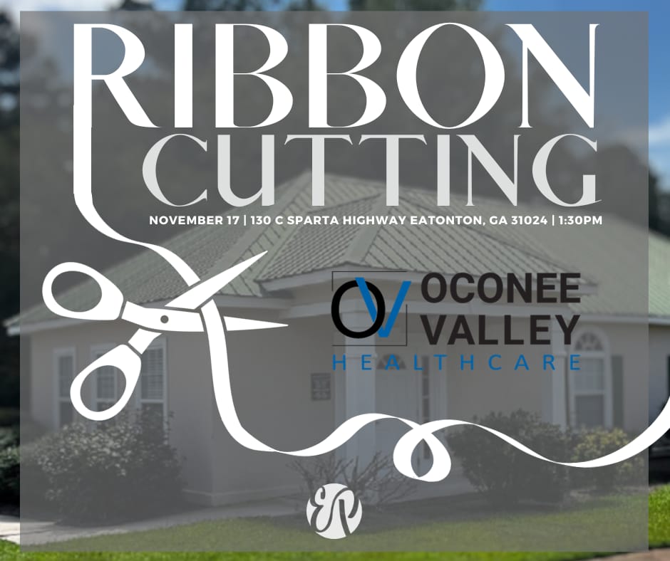 Oconee Valley Healthcare and The Eatonton-Putnam Chamber of Commerce are excited to invite community members to a ribbon cutting event on November 17th. This is an excellent opportunity to connect with others in the area and celebrate the local community. Come join them for a fantastic time of networking, support, and celebration. Don't miss out on being a part of this special event!