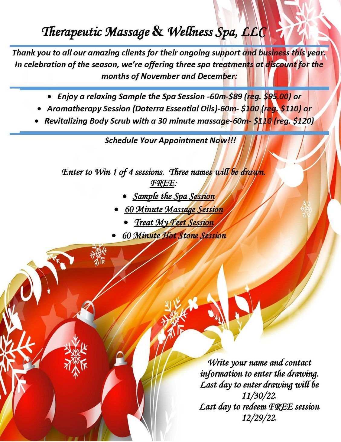 Therapeutic Massage & Wellness Spa’s Giveaway!