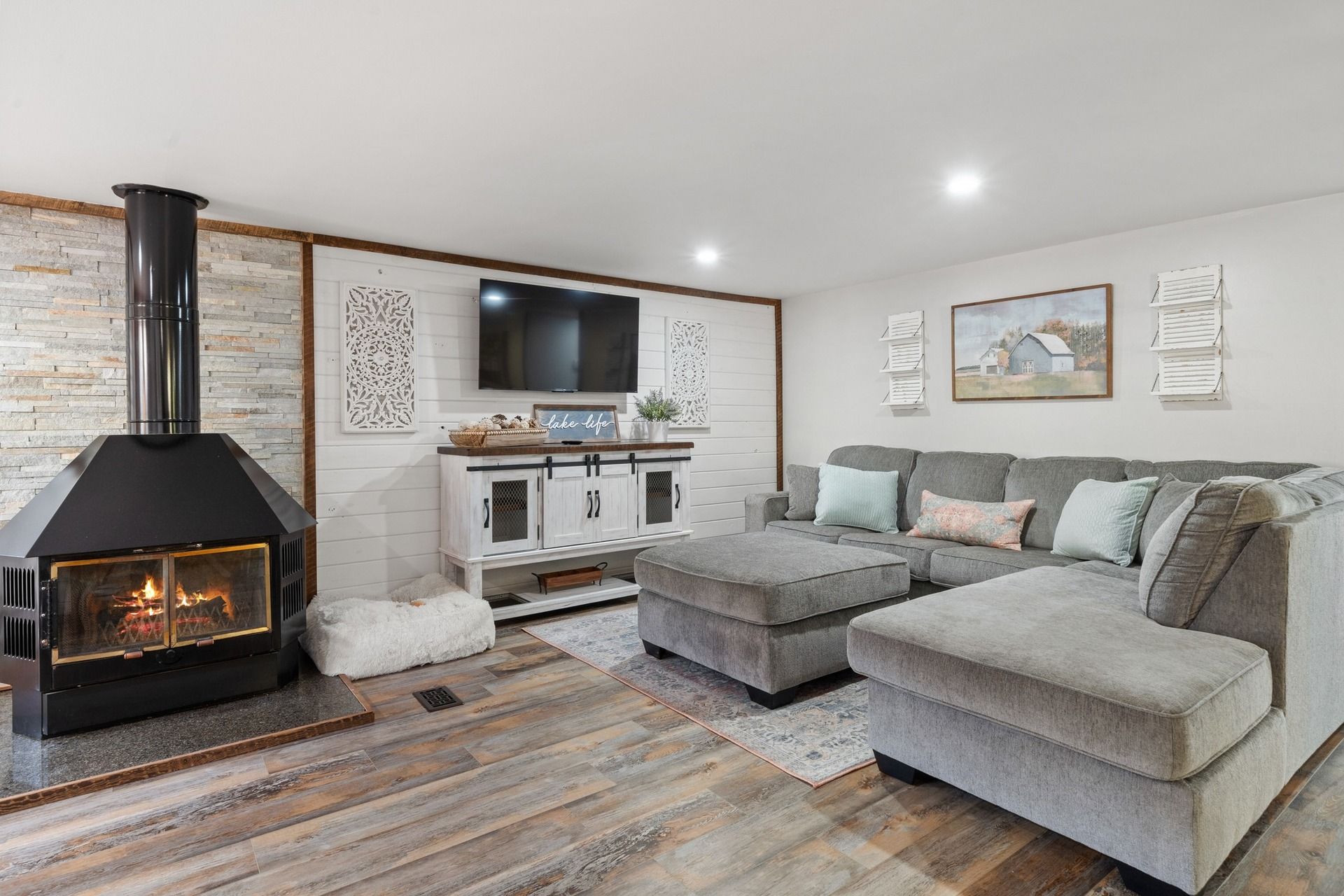 COMPLETELY REDONE AND TURNKEY LAKEHOUSE - This Lake Sinclair home is calling your name! Enjoy year round outdoor living on your immensley beautiful wrap around porch - the perfect spot to enjoy the outdoors and entertain. Plenty of room for furniture, tv's, grills - you name it! Upon entry, you will find the soft and calm colors, hints of ship lap and old barn wood, welcoming you to a lakeside oasis that is clean, cute and updated. The main living area features a wood burning fireplace, TV, seating area and dining nook. Just off of the living area is your kitchen with butcher block countertops, stainless steel appliances and an abundance of beautifully updated cabinets. Just around the corner, you will find an ensuite bedroom/bathroom that has a separate entrance - would be ideal for an in-law suite. Meander down the hall and you will find the second guest bedroom that is large enough for TWO beds and the bathroom right across the hall! Also across from the second guest bedroom you will find the laundry room of your dreams with a sink and plenty of counter space for folding. The Primary ensuite - what a treat you have! This primary ensuite features a large and updated bathroom - tile, walk-in shower with dual vanities, shiplap walls, tongue and groove ceiling, and a linen closet. Large bedroom with two closets with barn doors, dog bed and your own living room on the lakeside. How cool is that?! A Primary Ensuite with your own living room! Completely shut out the rest of the house and have your own space that leads you to the porch! Down at the water, you will find a lakeside sitting area, the perfect spot to unwind and have a Docktail . You will find steps away, your singlestall boathouse, two jet ski lifts and a storage closet on the dock. Water depth is usually 4ft - plenty for your watercraft. Pack your toothbrush and bags, cause this one is it.