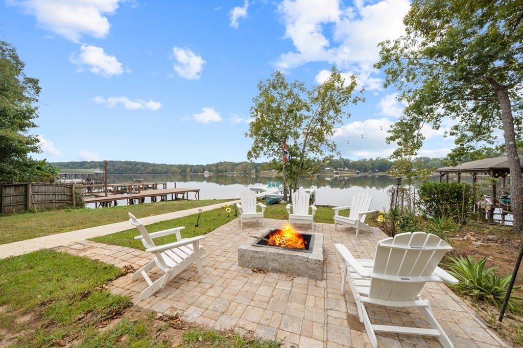Walk out the doors onto the back porch which is partially covered and this is theperfect spot to entertain your guests while enjoying the lake. Meander down your concrete walkway and you'll find a built in fire-pit area and just past that, you'll have your single slip dock.This is a great property and would be a perfect vacation, rental or full time residence! Call today to head to the lake!
