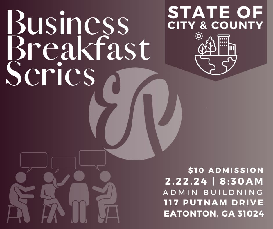 Learn about the current state of the city and county at the Eatonton-Putnam Chamber of Commerce's Business Breakfast Series on February 22nd, beginning at 8:30am. Gain valuable insights and updates from local officials and network with fellow business professionals. Don't miss this informative event!