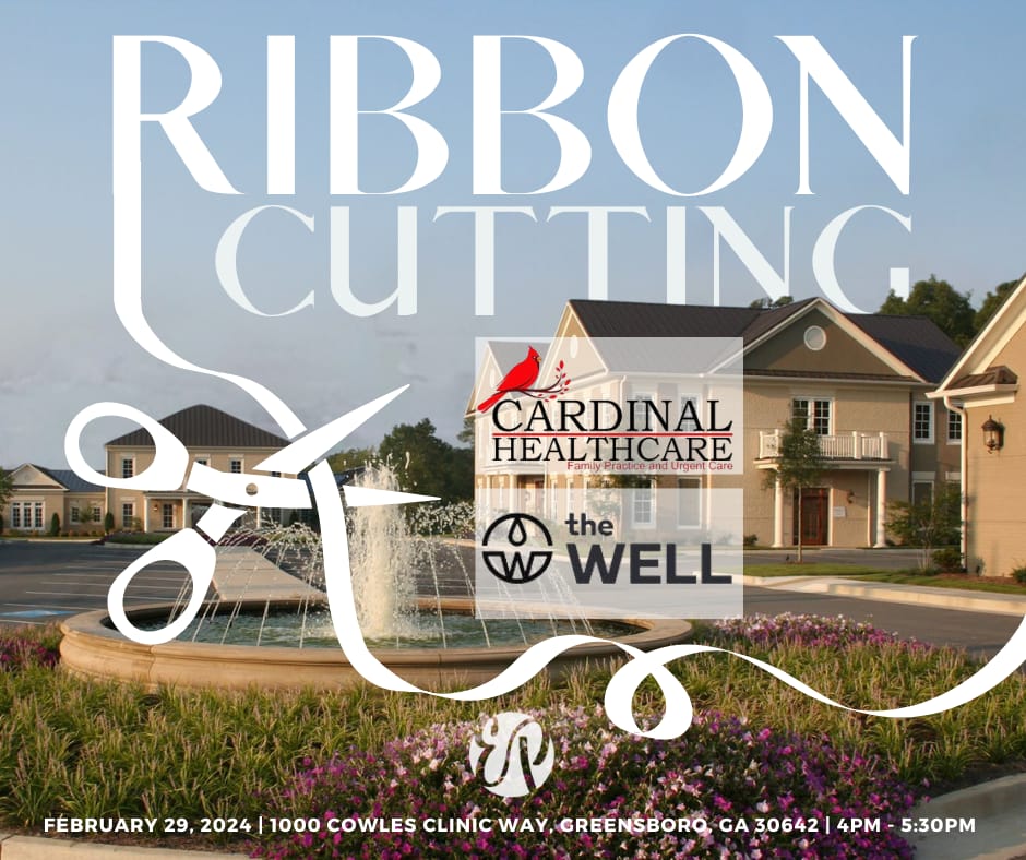 Cowles Clinic in Greensboro will be home to two new businesses. Cardinal Healthcare and The Well will host an open house on Thursday, February 29th, 2024 from 4 – 5:30 pm. A ribbon cutting ceremony featuring local community and government leaders will be at 4 pm. The community is invited to visit and learn more about services that will be provided. The event will be held at 1000 Cowles Clinic Way, Greensboro, Georgia.
