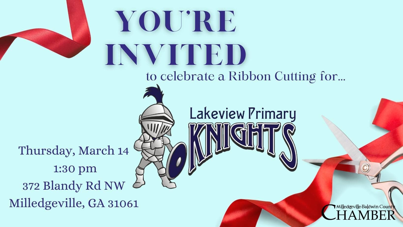 Join the Milledgeville-Baldwin Chamber at Lakeview Primary School to celebrate the completion of their amazing renovations with a ribbon-cutting ceremony. Your presence will make this moment even more special!