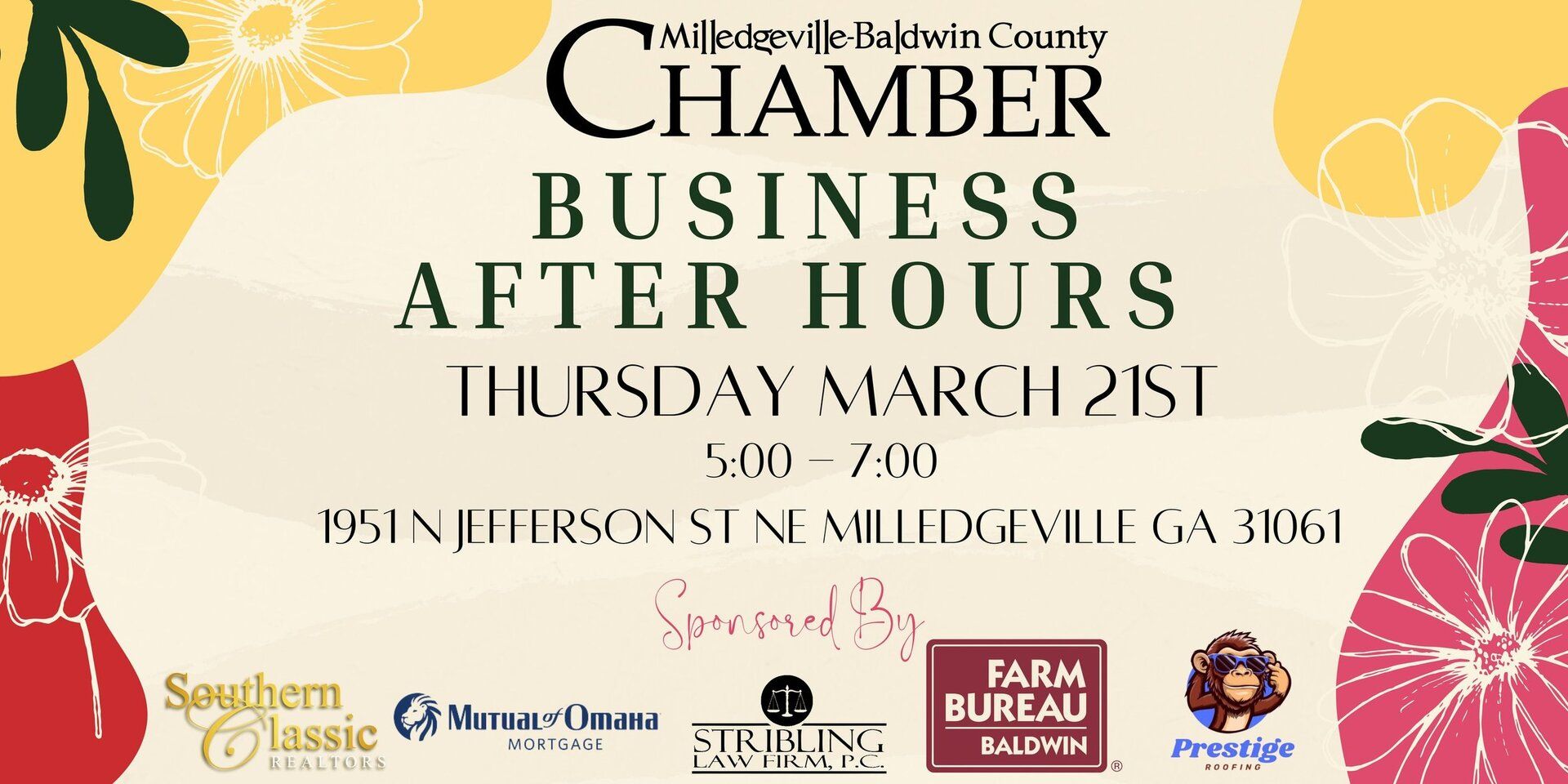 Join the Milledgeville-Baldwin Chamber on March 21st at 5pm for their Business After Hours!