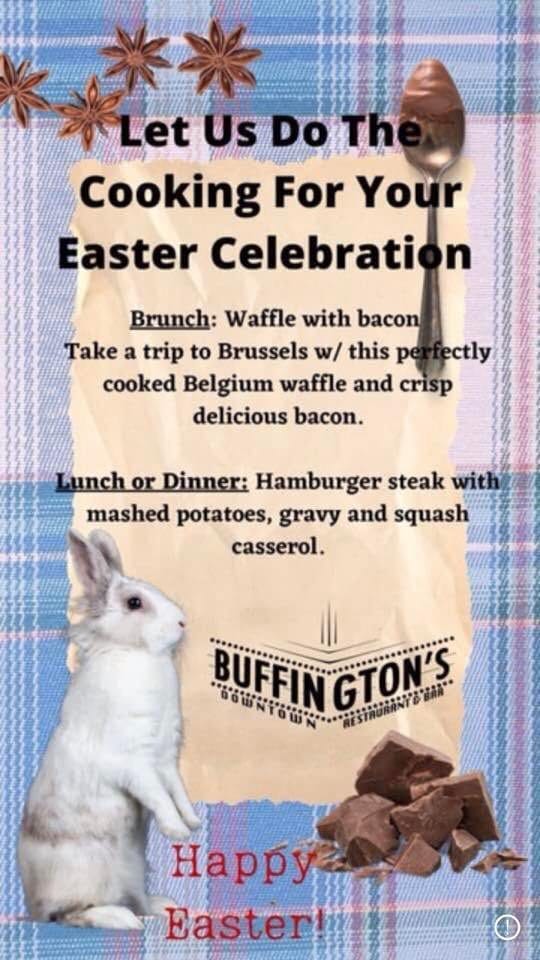 Join Buffington’s for brunch, lunch or dinner on Easter Sunday! They are featuring a special menu to enjoy with family and friends.
