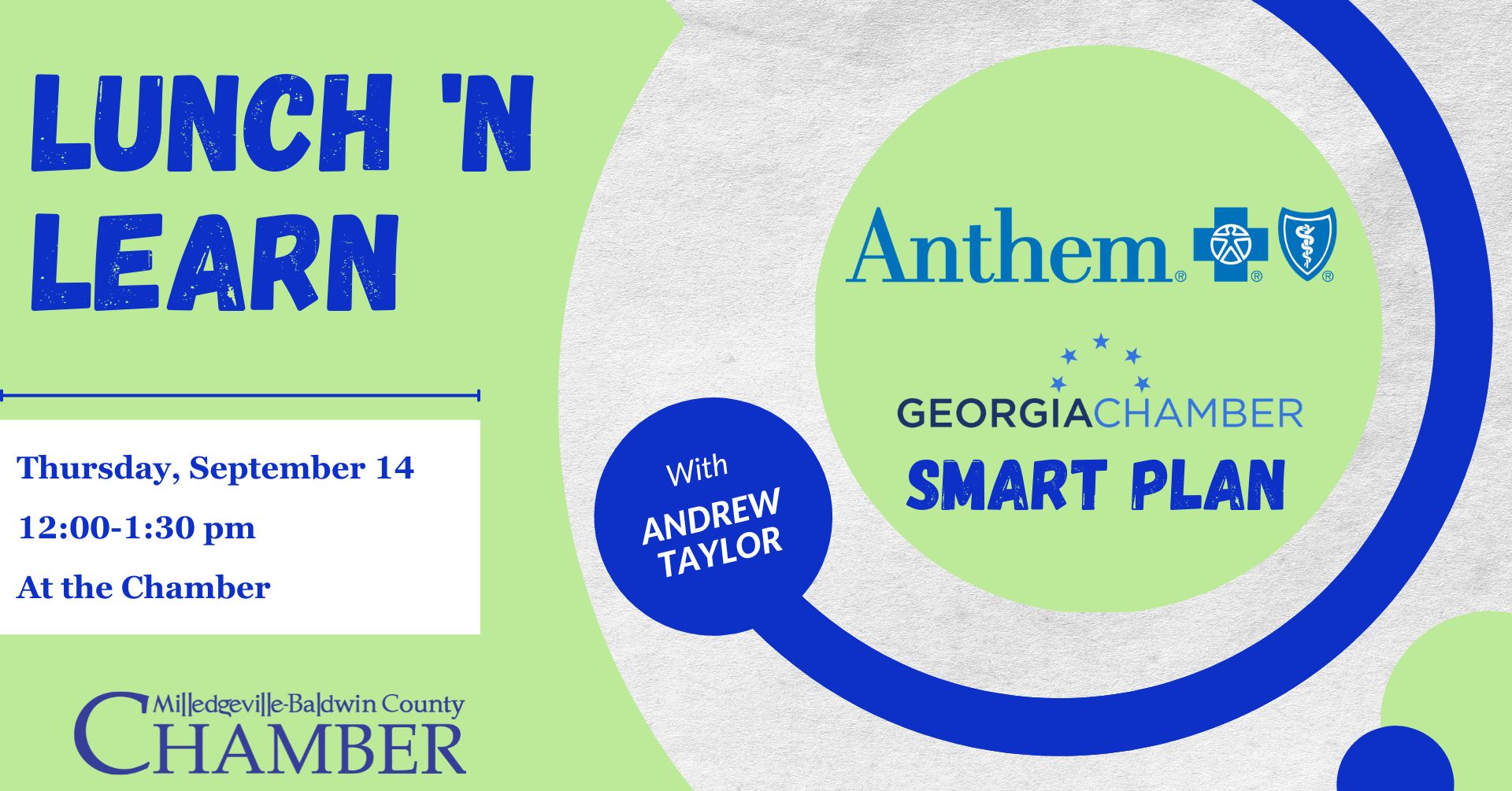 Join The Chamber and Anthem Blue Cross Blue Shield at the Chamber on Thursday, September 14th for a Lunch 'n Learn.